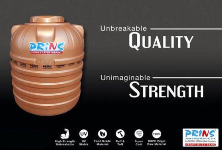 Prins Water Tank. This tank is designed using ruff & tuff food grade high-density polyethylene virgin material. It has excellent water storage capacity and unimaginable strength. For ensuring its long life, our provided tank is ultraviolet stabilized. Also, this tank finds its application in both residential and commercial sectors. Further,